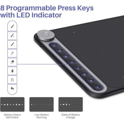 It ensures more accurate and detailed presentation. Q620M reduces the parallax to the lowest level and with no lag,making your drawing alive. Pen Resolution:5080LPI,Report Rate:266PPS,Tilt Range:±60,Pen Pressure: 8192 level.