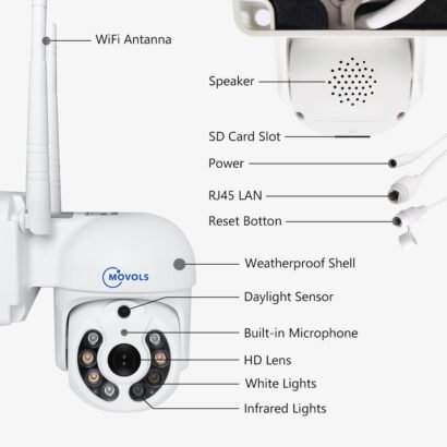 MOVOLS surveillance camera has a body and housing with an IP66 waterproof rating. So you can feel free to install it outdoor, like in your garage, backyard, or anywhere else. It can stand harsh weather conditions, including rain, snow, intense cold and heat(-30℃~50℃)