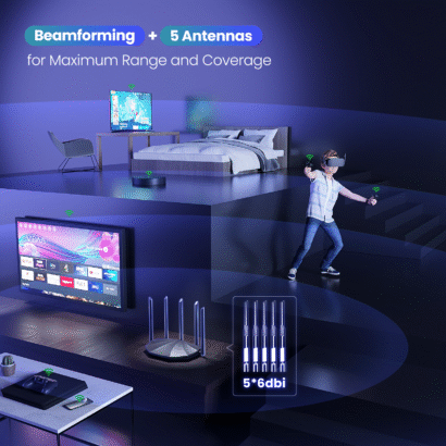 5 GHZ transmission speed faster than Wi-Fi 5 router(AC1200 )